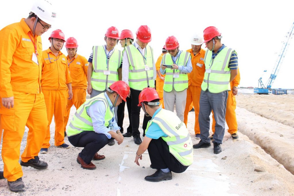 在Dangote煉油廠現場,印志松一行觀看了項目視頻介紹,聽取了項目經理喬秋峰的工作匯報,對施工現場進行了實地檢查。印志松為項目部所取得的成績點贊,他表示,在復雜的地質條件、巨大的工程體量、前期各項條件不成熟的情況下,現場團隊“特別能吃苦,特別能戰斗”,取得了現在的成績。項目部要再接再厲,團結拼搏,甘于奉獻,提升SINOMA品牌價值,服務好業主,為公司與DANGOTE集團的長期合作貢獻力量。對后續工作,他提出三點要求:一是繼續秉承公司“以人為本”的安全理念,積極落實安全標準化,加強人員安全培訓和各項安全措施的落實,確保每位員工的安全;二是創新思路,做好質量管理和進度控制;三是加強與業主及各方的溝通,營造共同解決問題的氛圍。